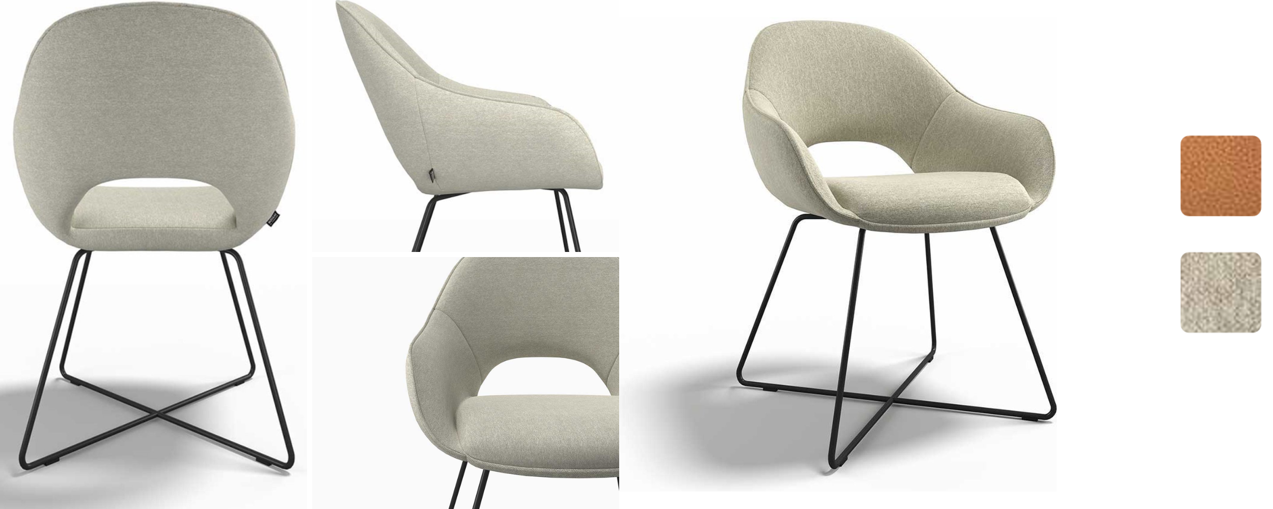 The Milan 6516-DC-Sneak 124 Shitake Cat.W is a modern dining chair that blends sophistication, comfort, and durability. Featuring a minimalist open-back design, it provides an airy feel while offering exceptional support. The black metal cross-frame base ensures strength and stability while adding a contemporary touch to any space. Upholstered in high-quality fabric, this chair delivers both a luxurious look and a comfortable seating experience.